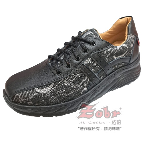 紳士真皮雙彈力氣墊休閒鞋黑米款 BB767