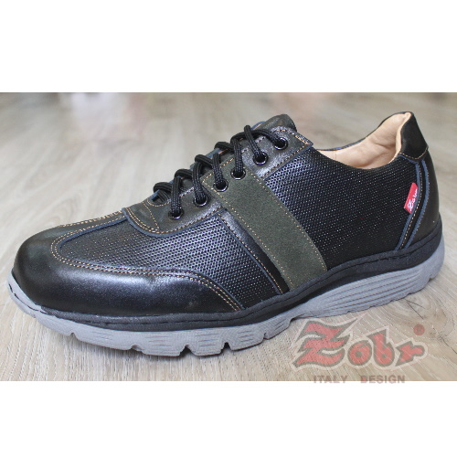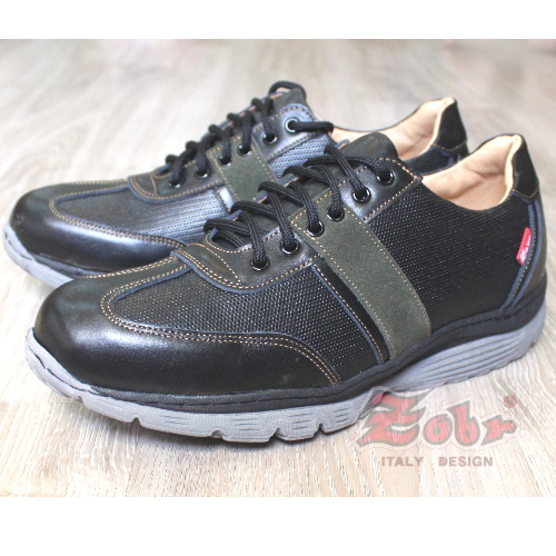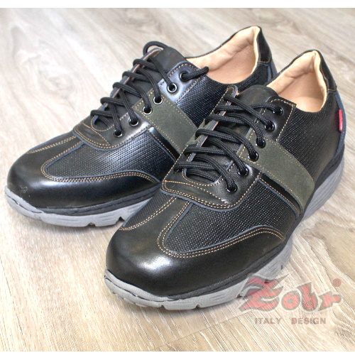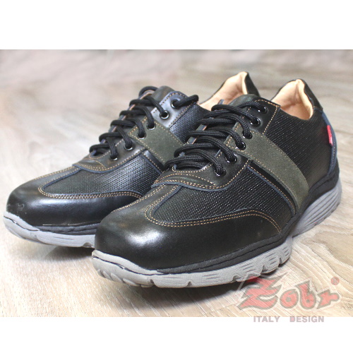 ZOBR真皮雙彈力氣墊休閒鞋黑綠款 Z256