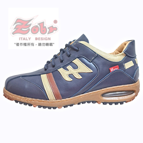 ZOBR真皮雙彈力氣墊休閒鞋藍米款 BB228