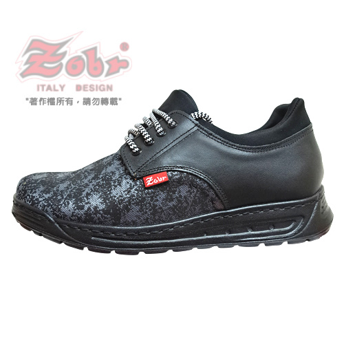 紳士真皮雙彈力氣墊休閒鞋黑灰款 U154