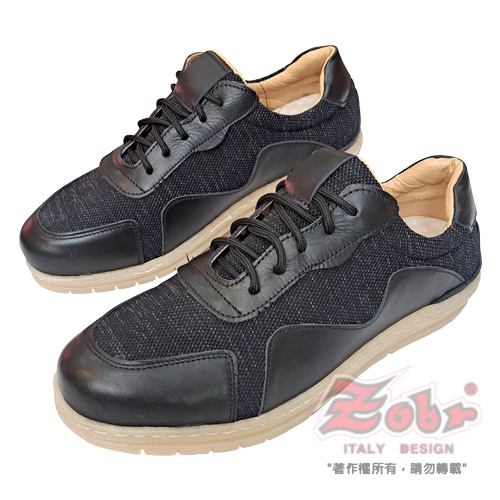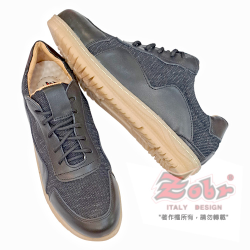 超穩步真皮休閒氣墊鞋 (黑X黑織) L229