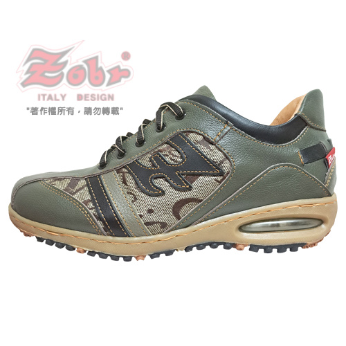 ZOBR真皮雙彈力氣墊休閒鞋綠彩款 BB228