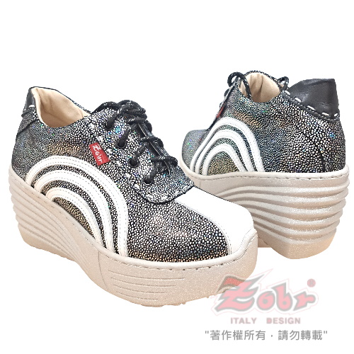 ZOBR擁長腿楔型鞋(白黑銀) 55398