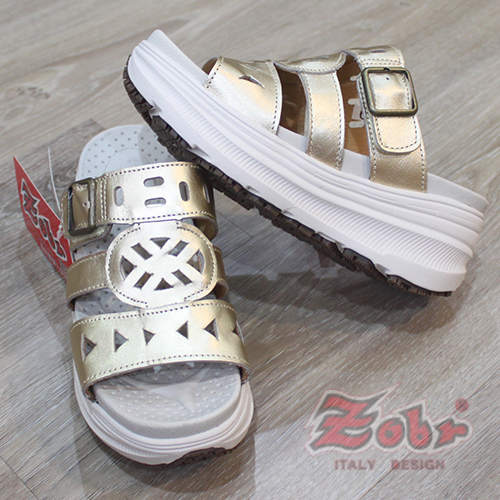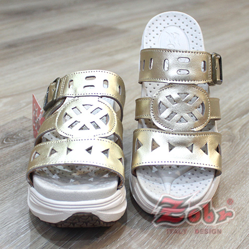 真皮雙彈力厚底氣墊涼鞋金款 Q302