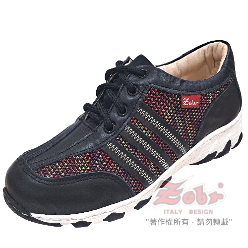 - 鞋面真皮透氣搭配時尚布料、內裡加增厚層乳膠墊舒適好穿