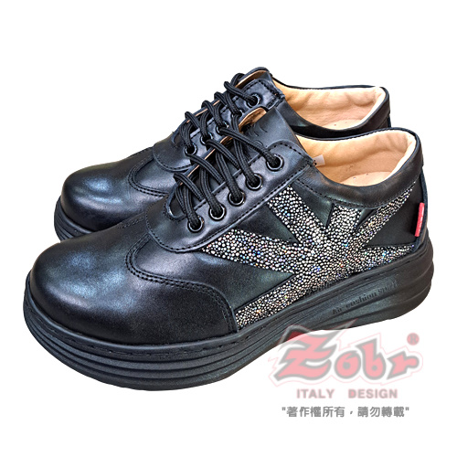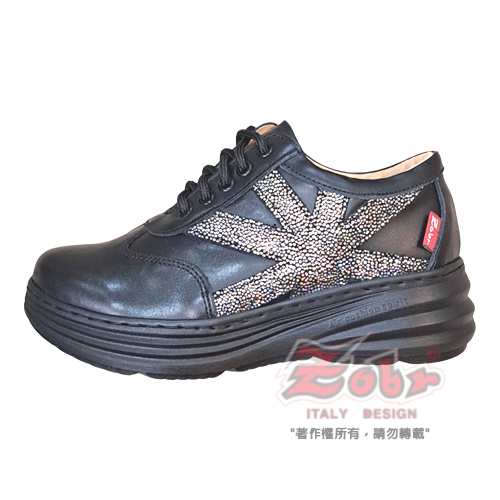 ZOBR 優雅輕盈零負擔休閒鞋黑X亮黑銀款 UU717
