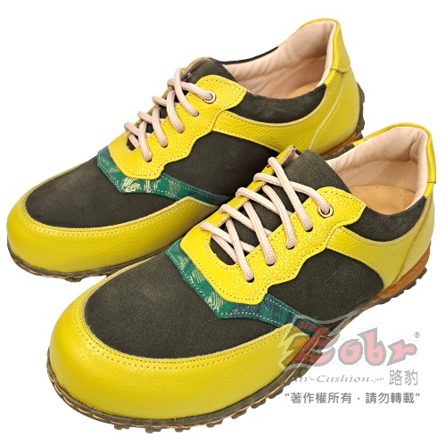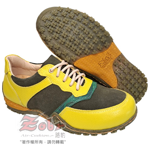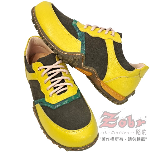 ZOBR 經典真皮氣墊休閒鞋黃綠款 B129